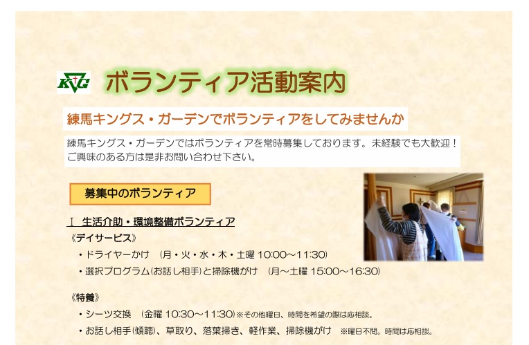 練馬キングス・ガーデンでボランティアをしてみませんか 練馬キングス・ガーデンではボランティアを常時募集しております&#x…