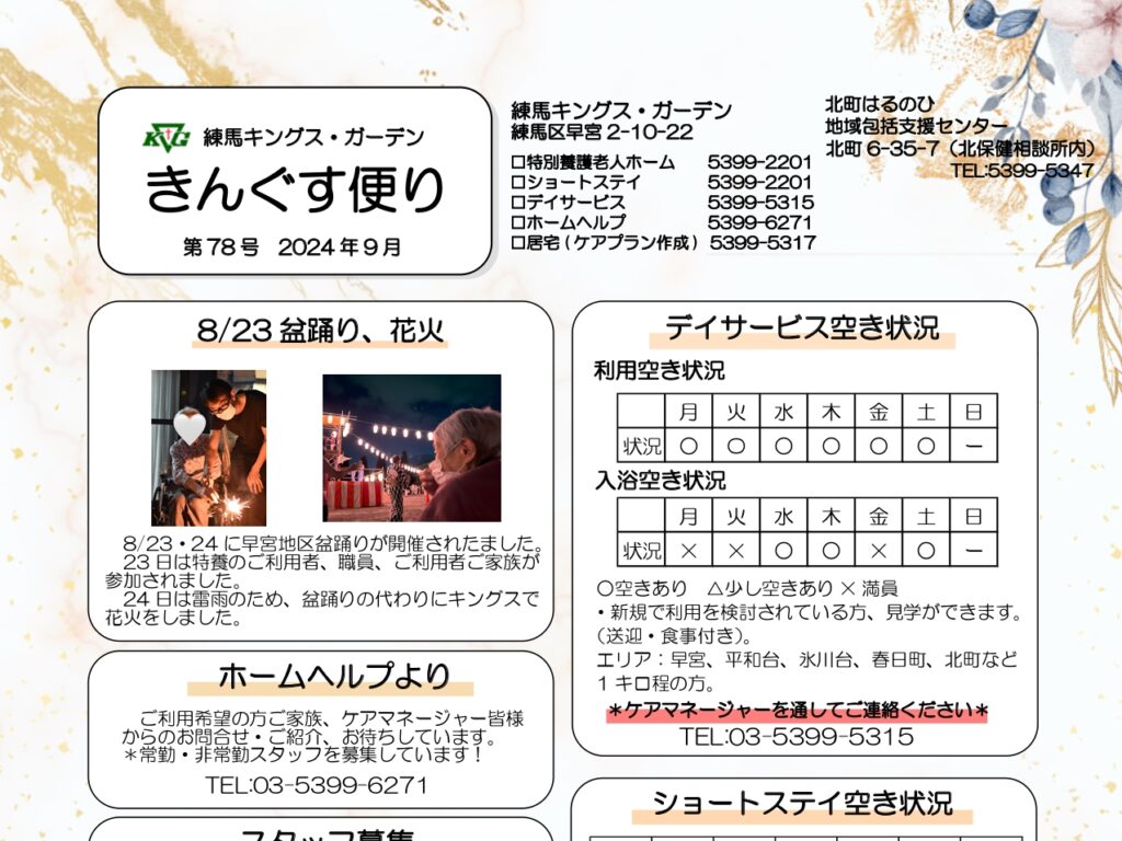 【練馬KG】きんぐす便り(9月号) こんにちは✨このたび9月号を発行しました👀求人情報、各…