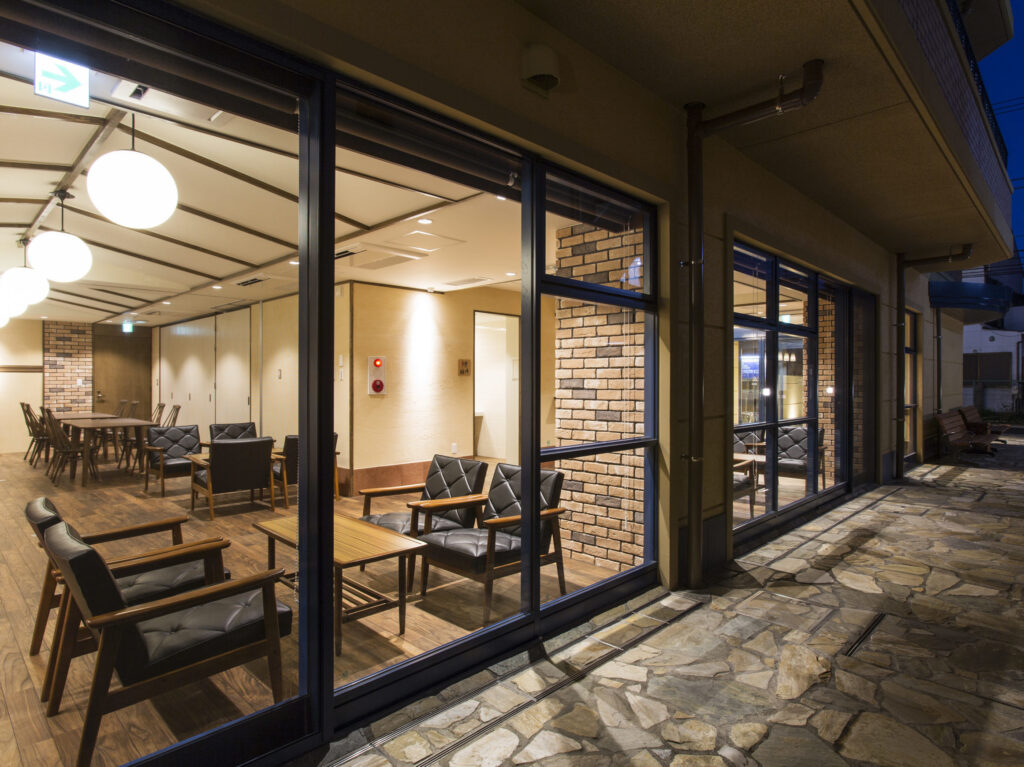 1階の地域交流スペースはキングス・カフェとして開放。コーディネーターを配し、乳幼児からお年寄りまで、地域の方々が主体となって地域に貢献できる働きをサポートしています。ふらっと立ち寄れるカフェとして、貸しスペースとして、がん哲学外来や認知症などのテーマを扱うセミナー会場として…。カフェで行われるさまざまなイベントを通して、当事者やその家族同士が出会える場、ご利用者と地域住民との接点となっております。