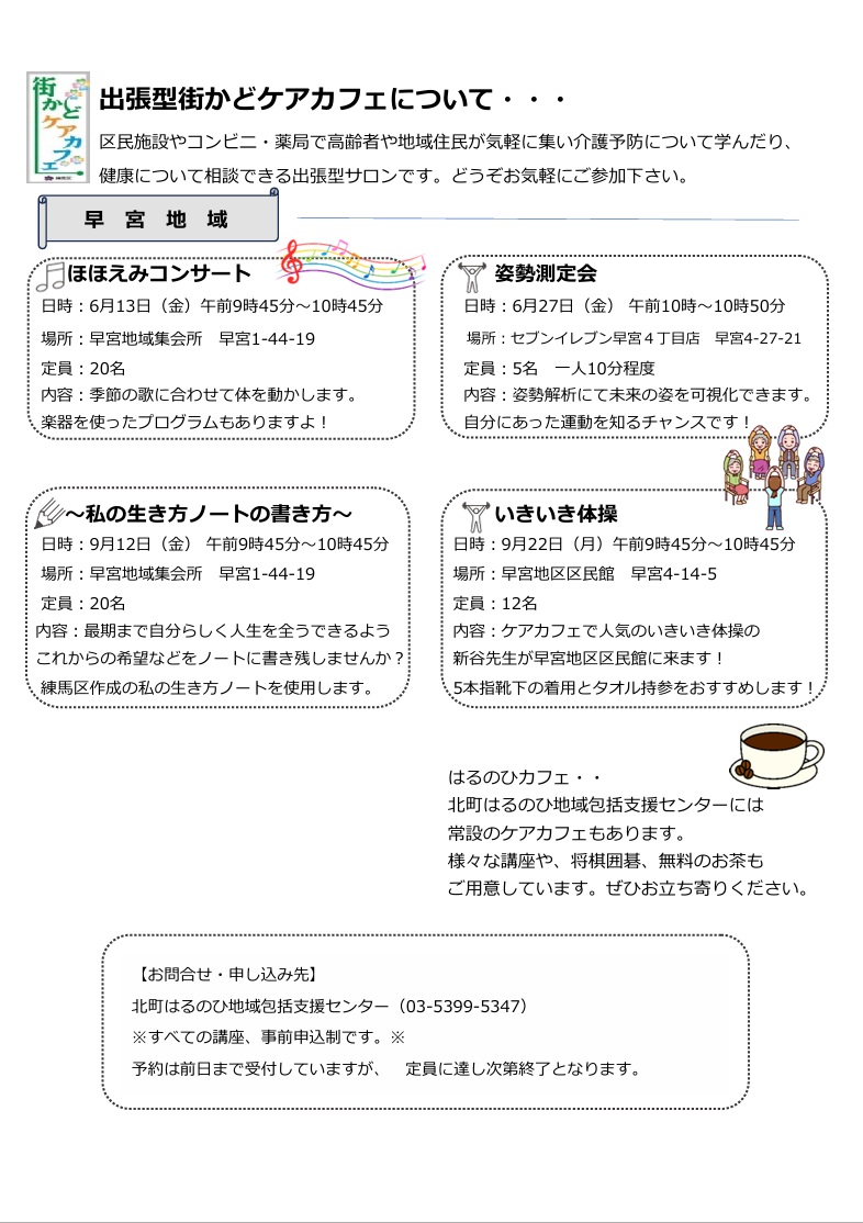 6月から7月の出張型まちかどケアカフェの開催予定表を作成しました。