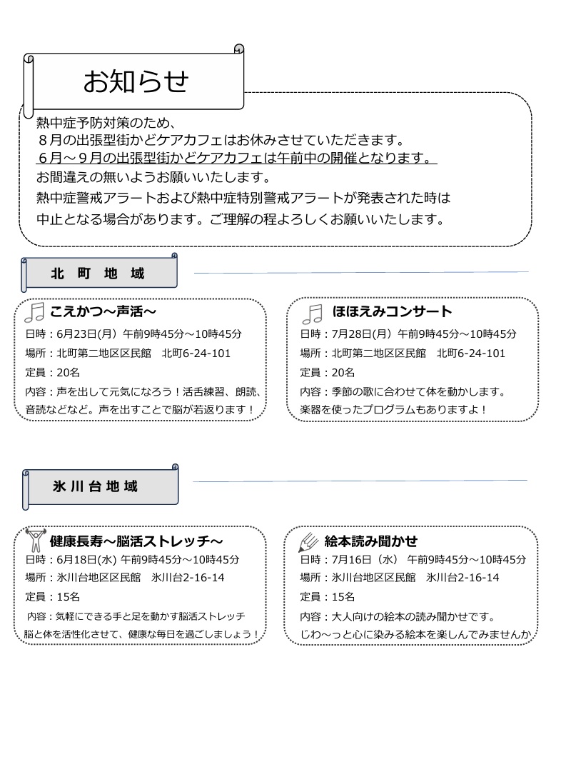 6月~9月の出張型街かどケアカフェは午前中の開催となります。