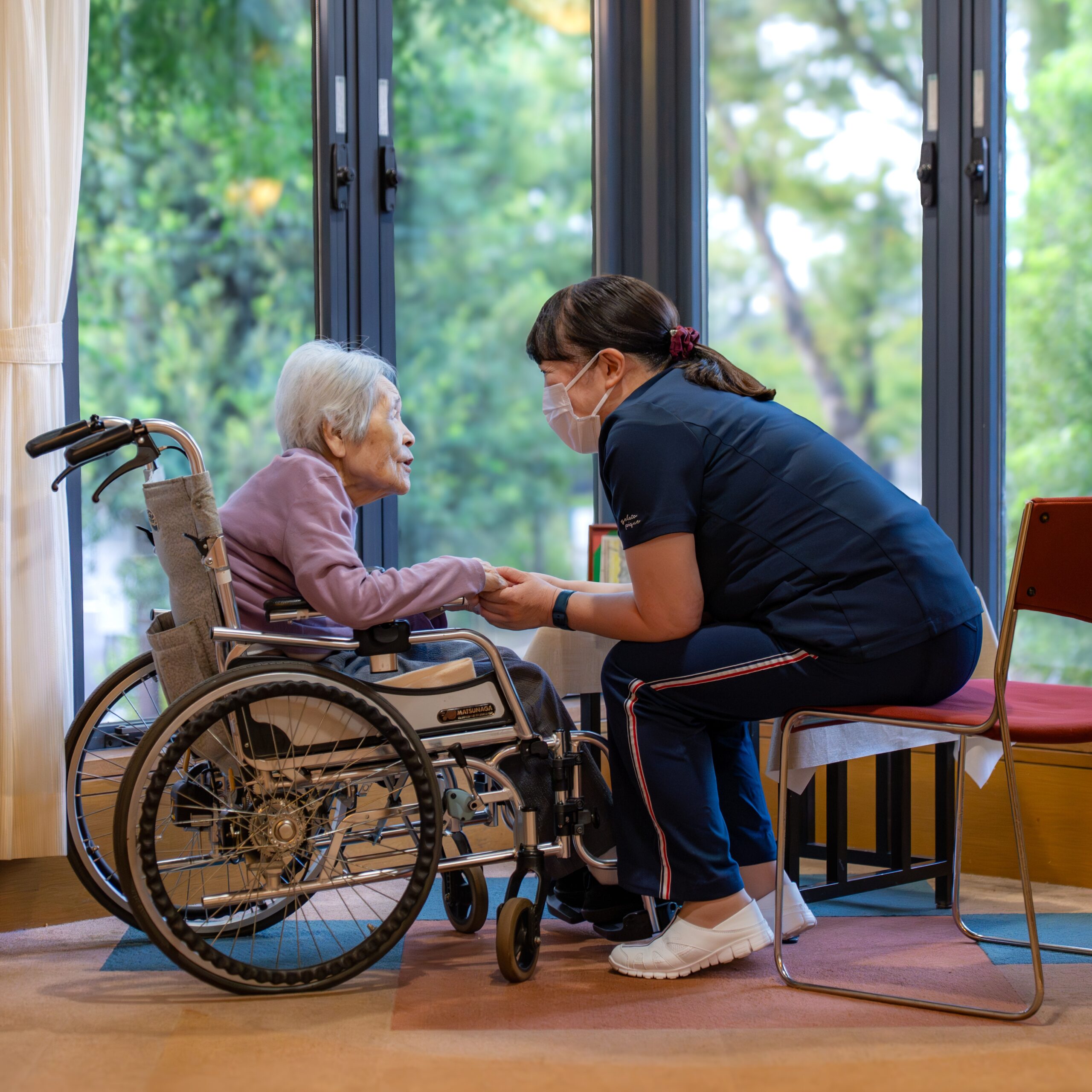 朝の見回りをしながら、ご利用者への「おはようございます」の元気な挨拶とともに看護師の一日が始まります。無事に朝を迎えられ、ご利用者から笑顔でお返事をいただけると私たちもホッとします。