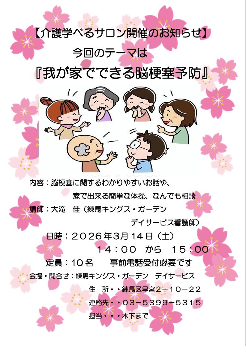 【練馬KG】3/14開催!介護学べるサロン