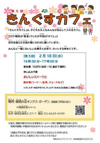 【練馬の丘】(2/18)第5回きんぐすカフェ
