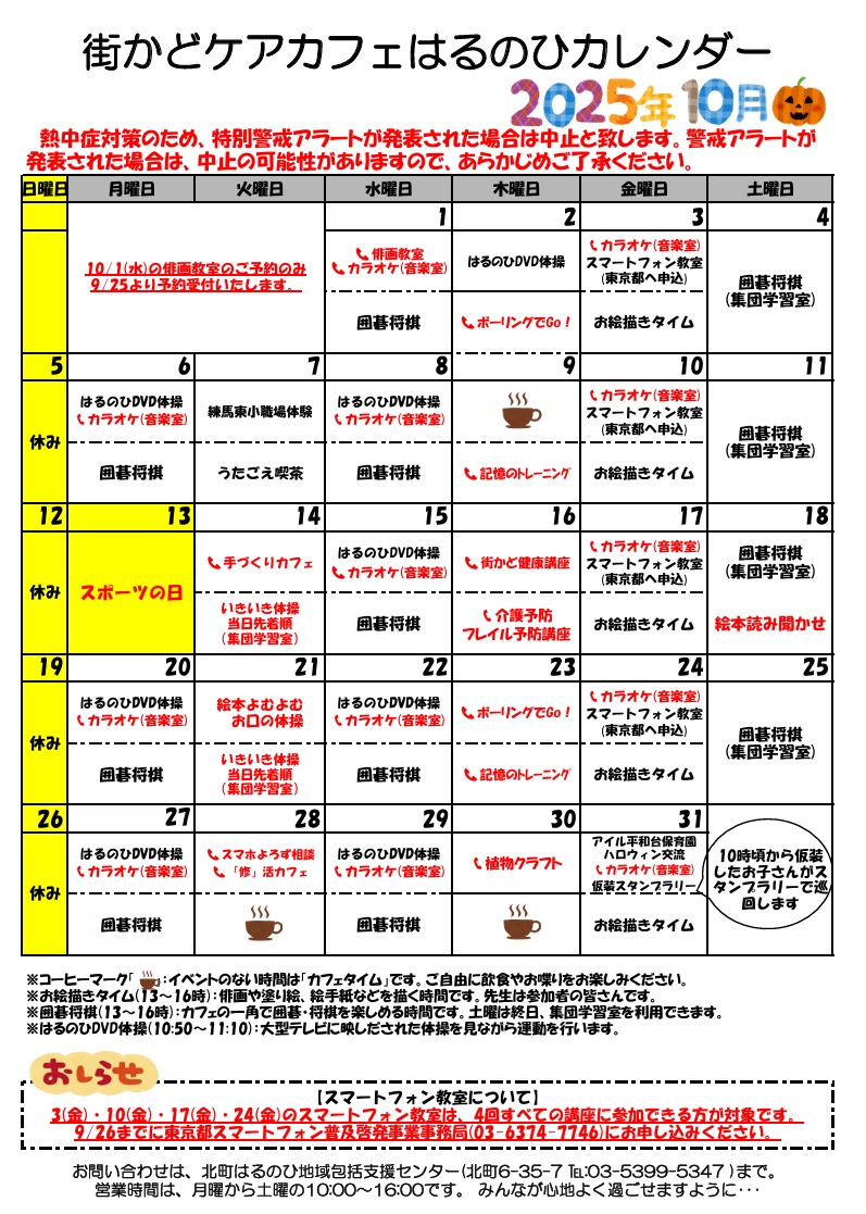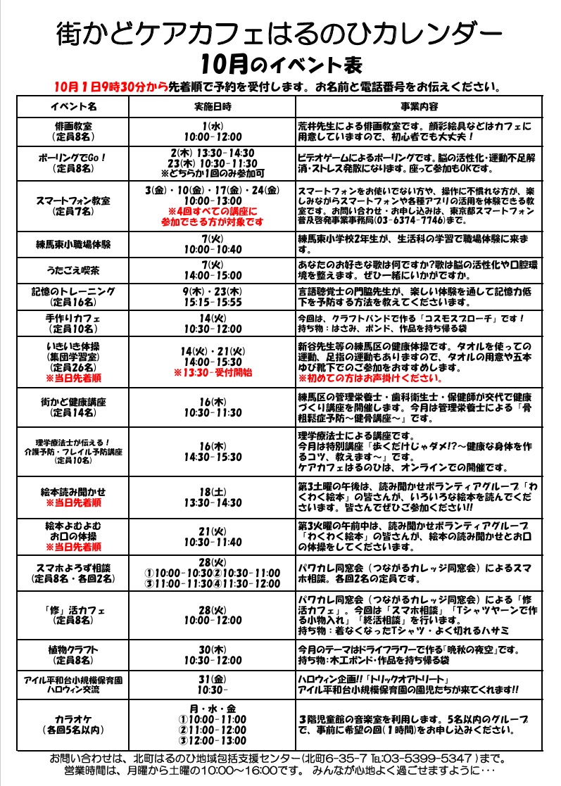 🌺常設型街かどケアカフェはるのひ🌺10月日程↓