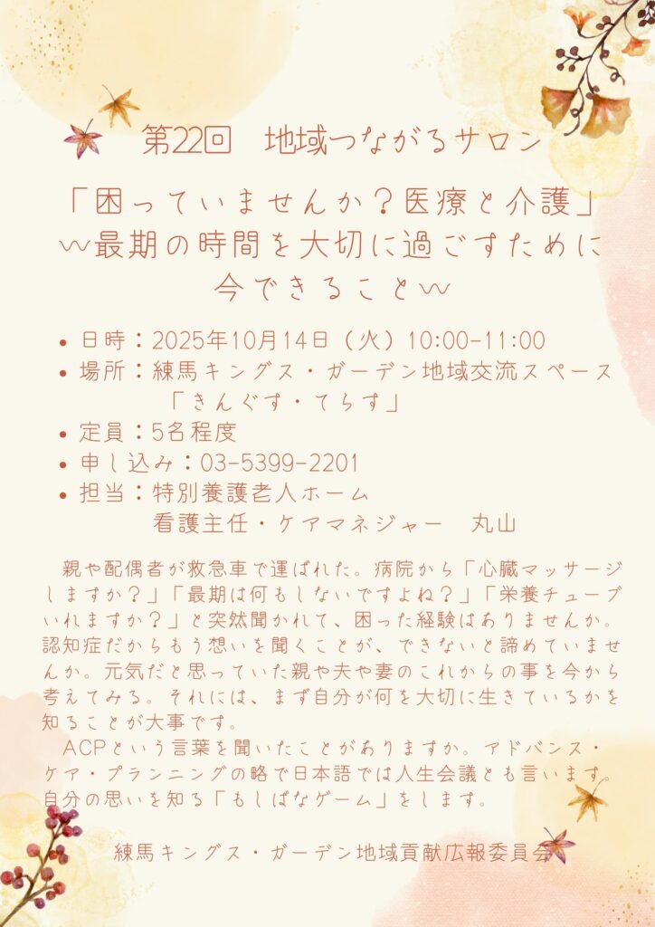 「困っていませんか?医療と介護」~最期の時間を大切に過ごすために今できること~